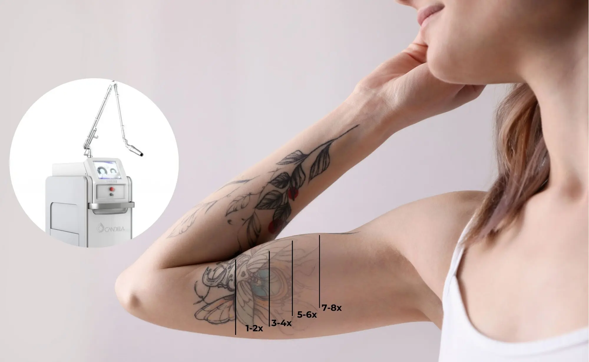 Gemiddeld zijn er 6 tot 10 behandelingen nodig voor een complete verwijdering van een zwarte tatoeage op een lichte huid.