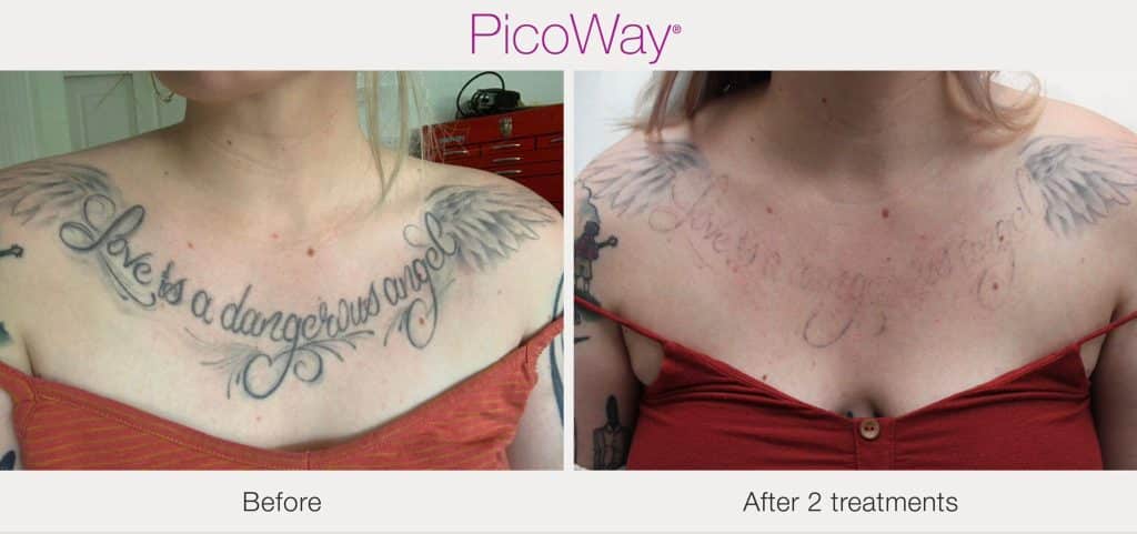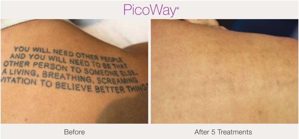 Wanneer een tatoeage wordt gezet, worden inktdeeltjes diep in de huid gebracht. Deze deeltjes zijn te groot voor het lichaam om af te voeren. De PicoWay® laser zendt ultrakorte energiepulsen uit (één biljoenste van een seconde!) die deze inktdeeltjes in microscopisch kleine stukjes breken.