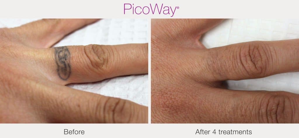 Dankzij de ultrakorte pulsduur en hogere precisie van de PicoWay® kunnen wij vaak alsnog de laatste inktrestanten verwijderen zonder de huid te beschadigen.